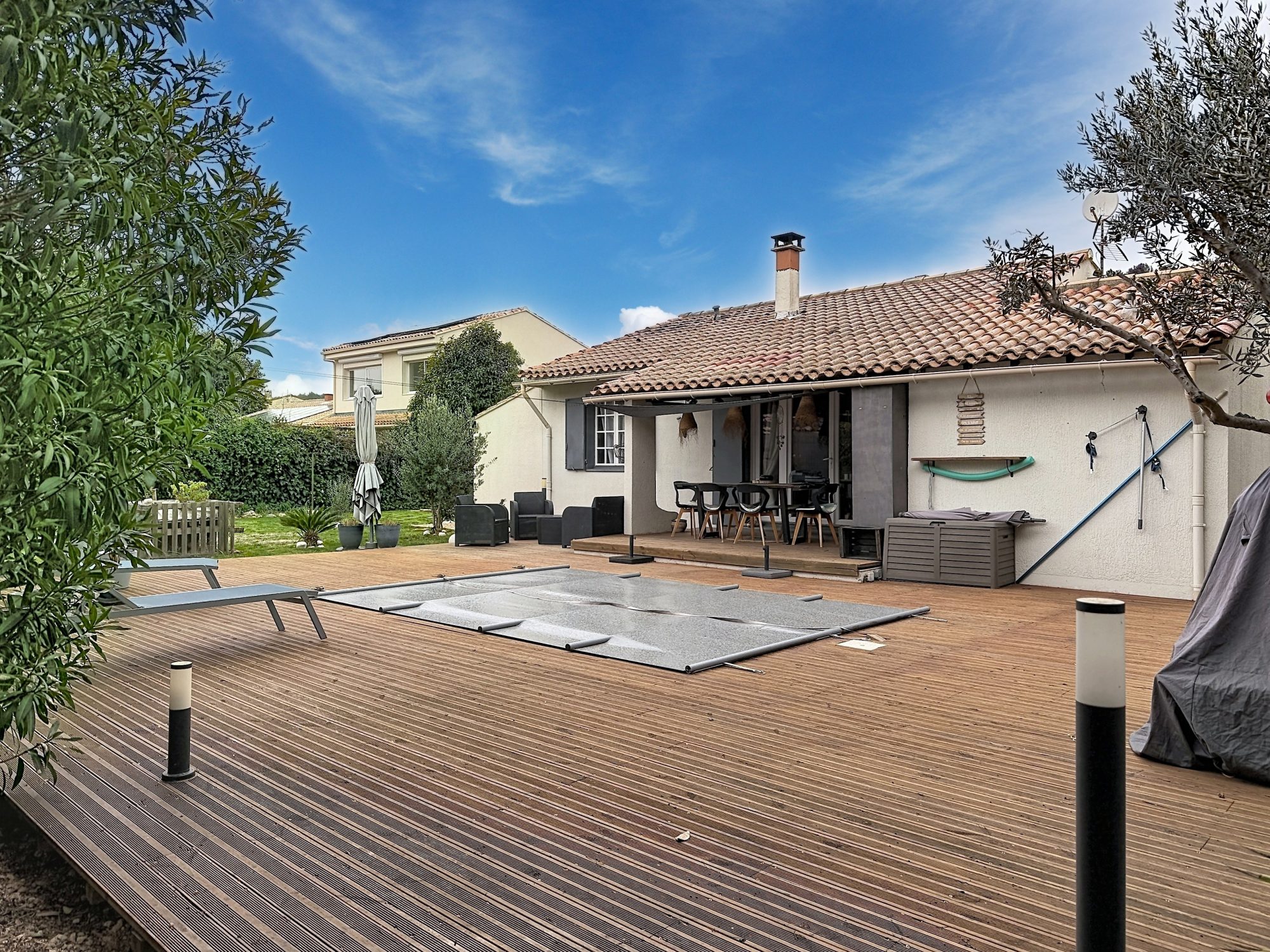 Prestations complémentaires : Climatisation gainable, Baies vitrées à galandage, Volets roulants électriques, Adoucisseur d'eau, Système de protection, Fibre optique.
