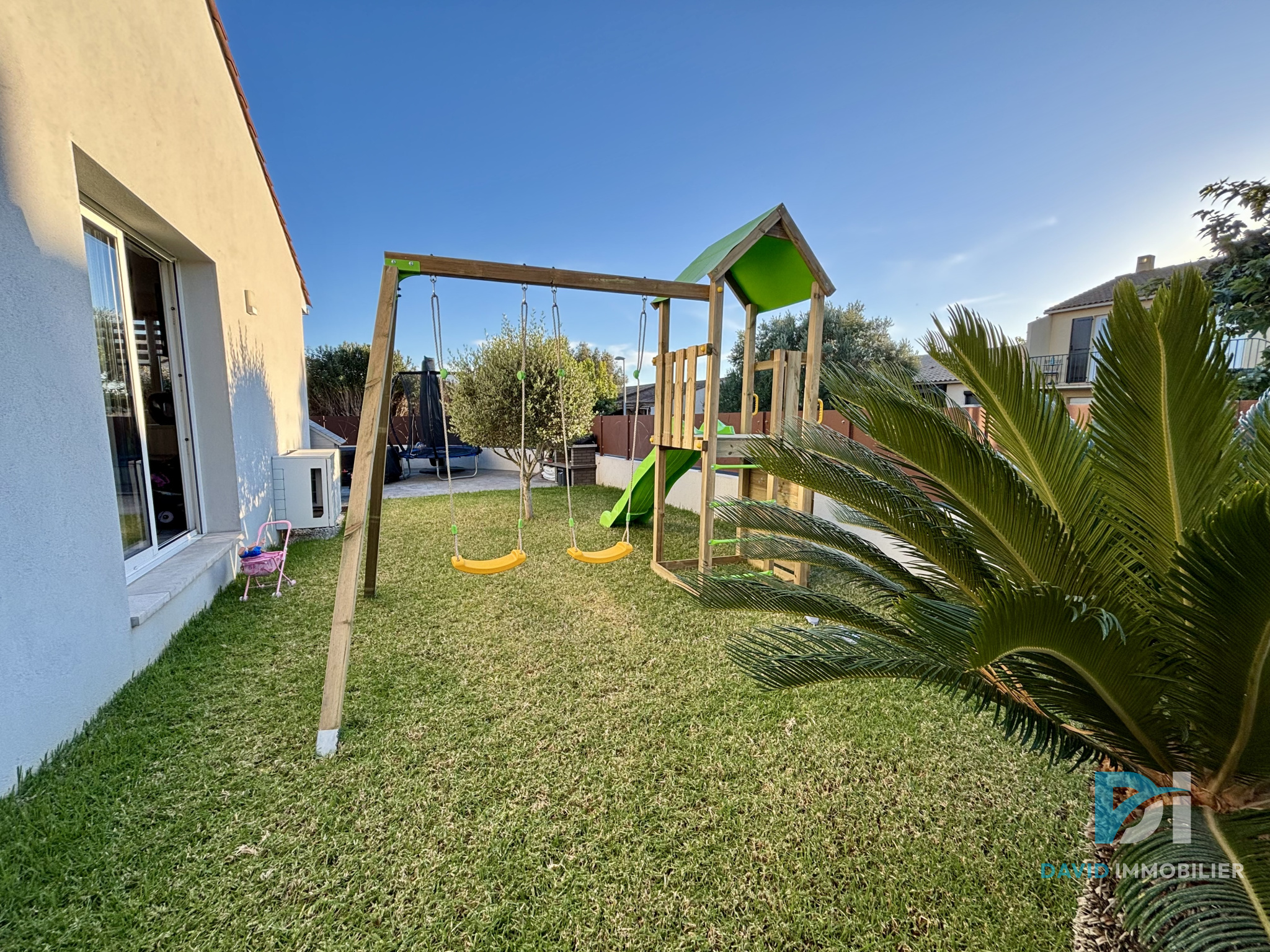Votre Agence David Immobilier vous proposes sur la commune de Florensac À NOTER : Toutes les clôtures de la maison, ainsi que les cabanons et la cuisine d'été, seront entièrement crépis à neuf (meme couleur que la villa) pour la vente. De plain-pied et très agréable à vivre, cette maison de 100 m2 offre de beaux volumes, à commencer par un séjour lumineux de plus de 43 m2, prolongé par une cuisine entièrement équipée, le tout ouvert sur un jardin joliment organisé en trois espaces distincts entre coin piscine, espace repas avec cuisine d'été et un espace plus ludique à l'avant. Le jardin bénéficie également d'un espace de rangement supplémentaire construit en dur avec charpente, idéal pour stocker le matériel de jardin et de piscine. Côté nuit, la maison dispose de trois chambres spacieuses, toutes dotées de placards intégrés, ainsi qu'un cellier-buanderie bien aménagé accueillant un ballon thermodynamique. Le confort est au rendez-vous avec la climatisation dans le salon et les chambres, du double vitrage PVC ainsi que l'isolation des combles permets une très bonne performance énergétique classée A/A. Une salle d'eau moderne de plus de 6 m2 complète l'ensemble. Le tout sur une parcelle de plus de 315 m2 bénéficiant d'une piscine au sel de 5 x 3, parfaitement intégrée au jardin, ainsi qu'un large accès permettant le stationnement d'un camping-car grâce à un portail coulissant et une allée de 3 mètres de large. Idéalement située entre terre et mer, Florensac est une commune dynamique et agréable à vivre, appréciée pour son tissu local et ses nombreux commerces de proximité. Son accès rapide aux grands axes routiers et aux autoroutes en fait un emplacement stratégique, tandis que les plages se rejoignent en seulement 15 minutes. Village très familial, Florensac dispose de toutes les infrastructures nécessaires sur place, de la crèche jusqu'au collège, avec des liaisons en bus vers les lycées des communes voisines.
