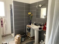 FAIRE OFFRE - Située dans lotissement récent, villa construite en 2020 de plain pied Type 3 de 71m2 habitable, jardin sur 3 faces, entrée sur un séjour lumineux de 31m2 avec coin cuisine, dégagement avec 2 belles chambres de 11 et 15m2 avec placards, salle d'eau, wc séparé, chauffage électrique et climatisation réversible dans le séjour, garage, terrasse de 15m2 exposée sud. Maison sous garantie décennales et dommage ouvrage. Quelques petits travaux à prévoir mais propriétaire ouvert à propositions. plans et autres informations sur demande.