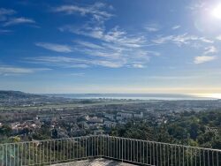 Découvrez cette somptueuse villa située sur les hauteurs de Mandelieu, offrant une vue panoramique exceptionnelle sur la mer Méditerranée et les îles de Lérins.
