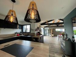 À l'extérieur, rien ne laisse deviner la surprise des volumes intérieurs. Mais dès l'entrée, la lumière, les perspectives et la fluidité des espaces s'imposent. Organisée en U, cette maison familiale de plain-pied déploie près de 200 m² où chacun trouve naturellement sa place : Un espace parental avec dressing et salle d'eau, un univers dédié aux enfants avec chambres et salle de bains, une suite d'amis avec sa salle d'eau privative, et au c?ur de la maison, une vaste pièce de vie ouverte sous charpente traditionnelle, tournée vers le jardin et la piscine avec de larges baies vitrées à galandage. Tout ici a été pensé pour conjuguer confort et convivialité : cuisine sur mesure, buanderie et rangements intégrés, menuiseries aluminium, chauffage au sol.