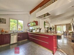 Les équipements : Chauffage électrique, cheminée bois, assainissement individuel, fenêtres aluminum, volets roulants motorisés et manuels, portail motorisé, portes de garage motorisées, interphone, système d'alarme, fibre optique...
