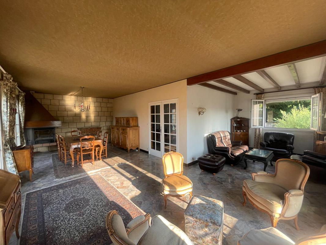 Vous découvrirez une vaste pièce à vivre baignée de lumière, comprenant une cuisine américaine aménagée et entièrement équipée, ouverte sur un espace salle à manger et un salon confortable, le tout prolongé par une entrée accueillante.