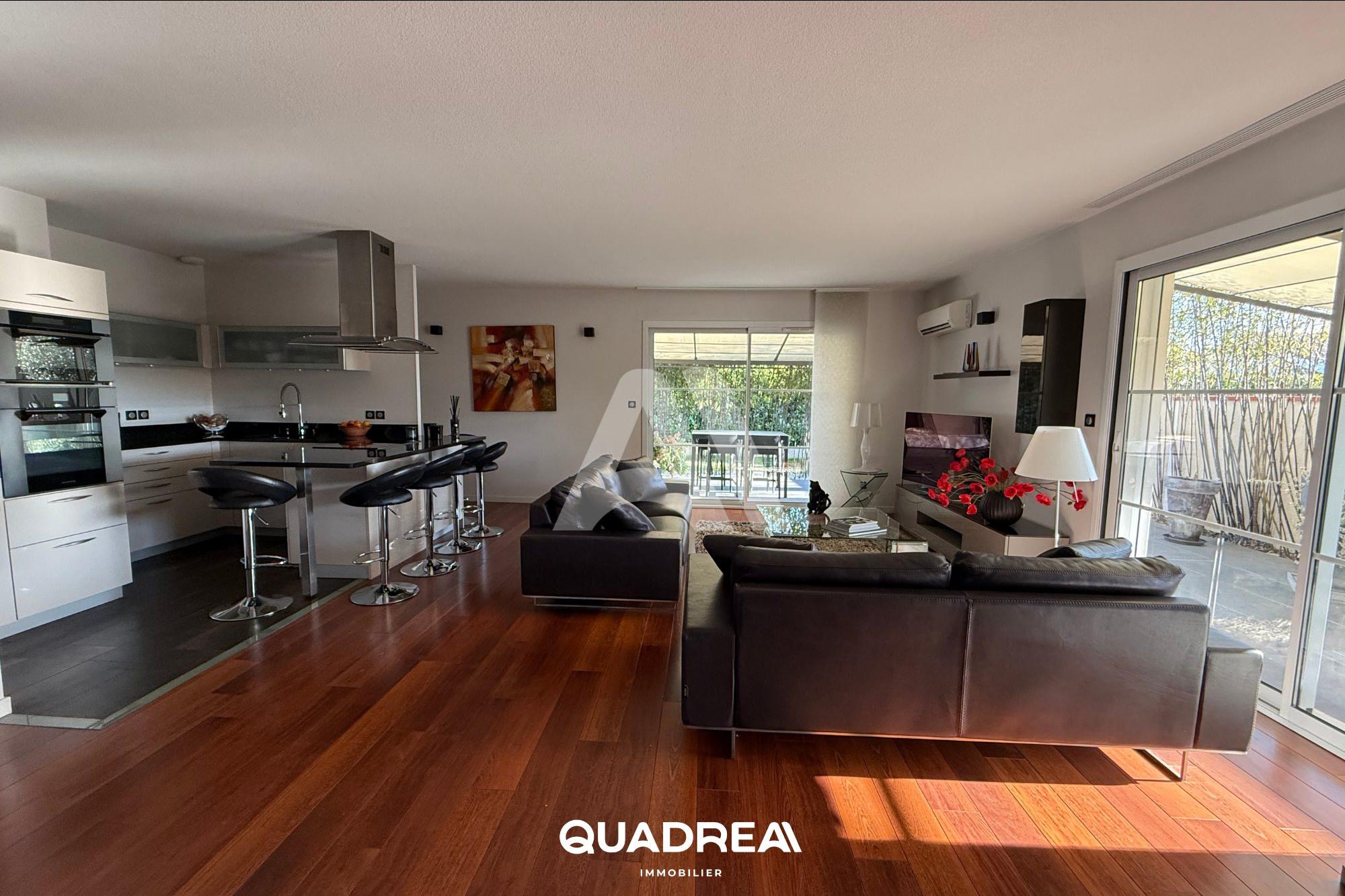 Le cabinet 2M Immobilier de Castelginest vous propose à la vente sur la commune de Castelginest, ptoche commerces et transports, cette superbe villa T4/5,125 m2 habitables avec cuisine indépendante et équipée, grand salon séjour avec cheminée, 3 chambres avec placard, buanderie, salle d'eau, wc, 1 double garage, abri jardin, piscine chauffée avec traitement au sel et son abri télescopique, puits, arrosage intégré, volets roulants solaires, chaudière au gaz à condensation changée en 2022, le tout en excellent état sur une parcelle de 941 m2 arborée. Réf : 3781 Prix du bien : 420.000 euros Prix du bien hors honoraires : 400.000 euros Honoraires TTC : 20.000 euros DPE : C Date de la réalisation du dpe : 14/10/2025 Les informations sur les risques auxquels ce bien est exposé sont disponibles sur le site Géorisques : https://www.georisques.gouv.fr/