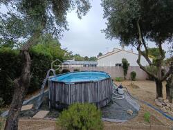 Le terrain arboré de 594 m² avec piscine hors sol (6x3) offre un bel espace pour profiter des beaux jours.