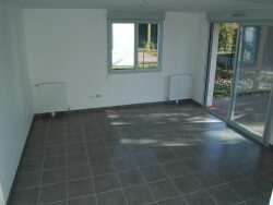 La pièce de vie est spacieuse et lumineuse grâce à ses larges baies vitrées, donne sur une belle terrasse de 14m² et sur son jardin clôturé de 80m², tous deux orientés SUD-EST.