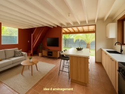 La maison développe 64 m² habitables, complétés par une terrasse couverte de 14,74 m², véritable prolongement du séjour. Dès l'entrée, vous découvrirez une pièce de vie lumineuse qui s'ouvre sur l'extérieur, offrant un potentiel d'aménagement chaleureux et fonctionnel. La cuisine reste à équiper, laissant la liberté de concevoir un espace sur mesure adapté à votre mode de vie.