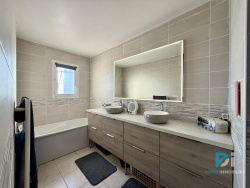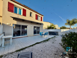 L'agence David Immobilier vous propose à la vente cette villa 3 faces située dans un environnement résidentiel recherché de Saint-Thibéry, sur une parcelle entièrement close de 329 m2. Dès l'entrée, la maison dévoile une belle pièce de vie d'environ 44 m2, baignée de lumière grâce à deux grandes baies vitrées qui prolongent naturellement l'espace vers l'extérieur. La cuisine ouverte s'intègre harmonieusement au séjour-salon, créant un lieu convivial et agréable à vivre. La terrasse carrelée d'environ 30 m2 permet de profiter pleinement des extérieurs, avec un jardin offrant un réel potentiel d'aménagement, notamment pour une piscine. Le rez-de-chaussée comprend également un WC indépendant ainsi qu'un garage de 15 m2, entièrement isolé et carrelé, apportant un véritable confort au quotidien. L'ensemble est équipé d'une climatisation réversible. À l'étage, l'espace nuit se compose de quatre chambres, d'une salle de bain entièrement rénovée avec baignoire, douche et meuble double vasque, ainsi que d'un espace buanderie-dressing indépendant. Une climatisation réversible équipe également ce niveau. La maison bénéficie de prestations récentes et d'améliorations significatives, telles que l'isolation sous toiture et du garage, la réfection des sols, l'installation de la fibre optique ou encore la mise en place d'un chauffe-eau thermodynamique de 300 litres. Douze panneaux solaires en toiture permettent par ailleurs une revente de la production électrique sous contrat, contribuant à la performance énergétique du bien. Le terrain, entièrement clos par des murs appartenant à la propriété, assure intimité et sécurité, tout en offrant un bel espace extérieur piscinable. Deux places de stationnement complètent l'ensemble en façade. Fonctionnelle, lumineuse et bien entretenue, cette villa offre de beaux volumes et des équipements modernes, idéale pour une vie de famille dans un cadre agréable. Honoraires charge vendeur Les informations sur les risques auxquels ce bien est exposé sont disponibles sur le site Géorisques : www.georisques.gouv.fr