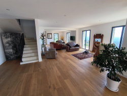 Carat Gp à le plaisir de vous présenter cette magnifique villa d'architecte rénovée sur 3 niveaux mêlant respect des traditions et modernité. Toit traditionnel 4 pans, toit plat permettant de casser les lignes et donnant un charme fou à cette grande maison de village, au calme, sur la commune de Cervione à quelques minutes des plages et des commodités du village ou de la plaine. Sur un beau terrain en planche de presque 6000m2 au calme, cette villa par son style architecte est bien pensée et composée de la manière suivante : - La partie principale, le rez de chaussée est une énorme pièce à vivre en L composée d'une grande cuisine moderne, tout équipée et épurée de + 55m2 prolongé par la salle à manger / salon de 66m2 et son hall d'entrée de 12m2 soit plus de 133m2 d'espace baigné de lumière par de nombreuses baies vitrées à galandage pour rejoindre la terrasse de 74m2 et les autres menuiseries fixes ou ouverte permettant d'avoir un panorama exceptionnel à 180o sur le village de Cervione et sur la mer Méditerranée. Une suite parentale totalement indépendante de 36m2 avec salle d'eau et WC privatif est un atout majeur permettant une vie à ce niveau sans difficulté. Un Wc invité ainsi qu'une pièce technique / rangement complète cette partie. Quelques finitions de garde-corps et sol de la terrasse seront à prévoir sur cette partie-là. - La partie nuit se prolonge à l'étage par un escalier en béton ciré donnant accès un bel espace dégagement de 14m2 qui dessert une belle et grande salle de bain centrale de 22m2 avec double vasque, baignoire, douche à l'italienne et WC privatif. De chaque côté se trouvant deux espaces distincts : le 1er servant de bureau et chambre pour une superficie totale de 43m2 sous comble, l'autre étant une belle chambre avec dressing ouvert de 32m2 sous comble. Accès par le dégagement du haut d'un toit terrasse de 75m2 non aménagé mais pouvant permettre d'accéder à un espace extérieur à l'étage à aménager. - Enfin le sous-sol de 147m2, accessible par l'intérieur et l'extérieur et intelligemment aménagé en trois espaces distincts : un espace buanderie et espaces techniques (avec le ballon d'eau, VMC etc), et deux grands espaces de rangements, garage permettant d'y rentrer une voiture s'il le faut mais aussi du rangement pour tout ce qui ne sert pas au quotidien. Un aménagement supplémentaire de cette espace peut être envisagé. La maison dispose de belles prestations avec parquet total dans toutes les pièces, climatisation gainable et pilotée dans toutes les pièces, rénovation globale, isolation et agrandissement récent permettant une mise aux dernières normes pour cette maison, spots intégrés partout, carrelage et faïence dans les salles d'eau de qualité, baies vitrées en galandage dans les pièces à vivre, Cuisine totalement personnalisé et intégrée de qualité avec tout l'équipement électroménagers fonctionnel, de beaux espaces extérieurs et verts etc... L'extérieur n'est pas en reste avec un beau terrain en planche avec accès sécurisé par visiophone, portail électrique et terrain en quasi-totalité clôturé et entretenue. Arboré d'arbres fruitier et amoureux de grand espace apprécieront. Le terrain est piscinable. Il ne reste plus qu'à poser ses valises ! Que ce soit pour un projet de vie, famille avec enfants ou bien une belle résidence secondaire cette maison satisfera toutes les demandes ! La présente annonce immobilière a été rédigée sous la responsabilité éditoriale de Mr JAGU Maxime, mandataire indépendant en immobilier (sans fonds de détention), immatriculé au RSAC de Bastia sous le numéro 488680711, titulaire de la carte de démarchage immobilier pour le compte de la société GP CARAT. Les informations sur les risques auxquels ce bien est exposé sont disponibles sur le site Géorisques : www.georisques.gouv.fr Prix FAI 728 000EUR, charges acquéreurs Prix net vendeur : 700 000EUR
