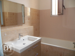 Villa T5 avec jardin et garage Entrée avec placard, cuisine séparée aménagée avec accés direct au garage, 2 WC, salon et séjour ouvert sur le jardin, à l'étage 4 chambres dont deux avec placards, Salle de bains, chauffage central au gaz et une climatisation neuve.