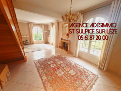 À 35km au sud de Toulouse Poche du centre de Saint-Sulpice-Sur-Lèze, Grande villa en position dominante T6 de 134m2 avec de belle terrasses qui permettent d'avoir une magnifique vue dégagée sur les coteaux .Belle entrée spacieuse donnant sur un salon de 40m2 avec de belle baies vitrées une cuisine toute équipée ( four, plaque, hotte, frigo , meubles etc... avec deux porte donc une côté salle à mangée, toilette indépendant . Ensuite, un espace nuit comprenant 3 chambres, une salle de bain avec douche, baignoire et un wc. un cellier avec point d'eau et placard, enfin, à l'étage une suite parentale ou chambre d'adolescent avec sa propre salle de douche et WC indépendant donant sur un balcon avec vue sur les Pyrénées et les coteaux de st sulpice sur leze . Chaudière changée en 2016 et la cuve en 2023. À l'extérieur, une piscine enterrée de 8x4m couverte et son local technique une cuisine en bois bien équipée avec un carport qui va vous permettre de partager de bon moments à l'abri du soleil, on trouve aussi un barbecue, un atelier et un double garage. Enfin, un jardin d'une surface de 2666m2 portail électrique, une terrasse de 70m2 . Le logement référence 52989. Le prix est de 301 500EUR dont 4.4% d'honoraires agence à la charge de l'acquéreur soit 289 000EUR net vendeur. taxe foncière, il est de 1 300 EUR/an. Classement énergétique : E entre 2 200 EUR et 3 030 EUR Prix moyens des énergies indexés au 1er janvier 2021 (abonnements compris) GES : E .Pour tout renseignement, contact Agence Adèsimmo sur le secteur Noé, Lézat sur Lèze, Capens, Carbonne, Beaumont, Mauzac... au 05 61 87 20 00 et à contact@adesimmo.com