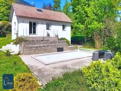 Aménagement extérieur: La maison bénéficie d'un espace extérieur de plus de 800 m² parfaitement entretenu. Des haies récentes, encore en croissance, ont été plantées afin de préserver l'intimité de la propriétaire. Une grande terrasse de 30 m² domine une superbe piscine au sel de 9x4 m chauffée par pompe à chaleur, et offre une vue dégagée sur les montagnes et la nature environnante. Un potager et plusieurs emplacements de stationnement complètent cet extérieur agréable et fonctionnel.
