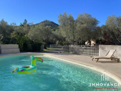 Édifiée sur une parcelle de 2857m² plantée d'oliviers, elle développe une surface utile d'environ 273 m², dont 240 m² habitables, ainsi qu'un garage de 40 m².