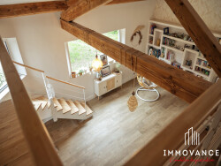 À l'étage, deux chambres supplémentaires, une salle d'eau, une mezzanine et un grenier viennent parfaire l'ensemble.