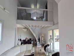 Composée d'une grande pièce de vie lumineuse avec une cuisine ouverte aménagée et équipée, une mezzanine, 4 chambres spacieuses dont une suite parentale de 50 m² avec dressing, salle d'eau et wc, puis une salle d'eau indépendante et un wc indépendant. Cette maison est parfaite pour les familles nombreuses ou pour ceux qui aiment recevoir.
