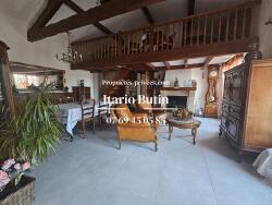 A l'étage, une belle pièce mansardée de près de 30 m², actuellement utilisée comme salle de jeux, séduit par ses poutres apparentes et son cachet unique.