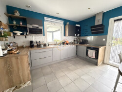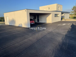 Dans un style moderne, cette maison récente est composée - d'un RDC avec séjour cuisine donnant sur la terrasse, 3 chambres, salle de bain avec douche et baignoire, WC, grande pièce chauffée. - d'un étage avec 1 chambre, 1 dressing, 1 salle d'eau avec WC - d'un double carport. - d'une piscine