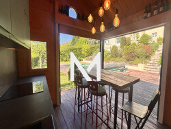 Côteau de la Tronche - Emplacement rare, villa de 213M² offrant une vue panoramique massifs, sans vis à vis sur un terrain de 1444 m² av piscine et pool House /cuisine d'été. larges ouvertures et deux terrasses, Orientée Sud Est , elle bénéficie d'une belle piéce de vie , une cuisine Italienne dinatoire, 4 chambres dont une suite parentale, une piéce cinéma (poss 5) 3 sdb, dressing, buanderie , arriére cuisine. Nombreux rangements + annexes. Chauffage au sol + radiateurs (pompe à chaleur installée en 2024), climatisation, Garage double motorisé, stationnements exterieurs av borne de recharge, Maison trés bien entretenue, pas de trvx à prévoir. Contact : Alice Montaillard 0625362730. Les informations sur les risques auxquels ce bien est exposé sont disponibles sur le site Géorisques http://www.georisques.gouv.fr