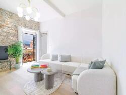 Vous découvrirez alors une agréable pièce de vie composée d'un séjour, d'une cuisine moderne aménagée et équipée, ainsi qu'un mur en pierres apparentes apportant un cachet authentique. Cette pièce donne accès à une terrasse de 4 m²,face à la mer et au port.