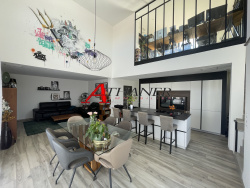 Dans un quartier récent, calme et dégagée, Magnifique Villa contemporaine en 3 Faces avec Piscine De type 4 Pièces, elle dispose d'une suite en rez de jardin avec salle d'eau et dressing. Un vaste séjour avec cuisine américaine de bonne facture. A l'étage, un bureau mezzanine, un solarium avec vue dégagée sur les montagnes, 2 chambres et salle de bain. Extérieur sans entretien doté d'une piscine carrelée chauffée et équipée d'un volet roulant. Maison faite avec beaucoup de goût et des prestations de qualités. Complétant le bien, un garage isolé / carrelé, 2 WC, Parking. Logement entièrement climatisé par système gainable Volets roulants électriques partout. Villelongue commune entre Argeles sur Mer et le Boulou...