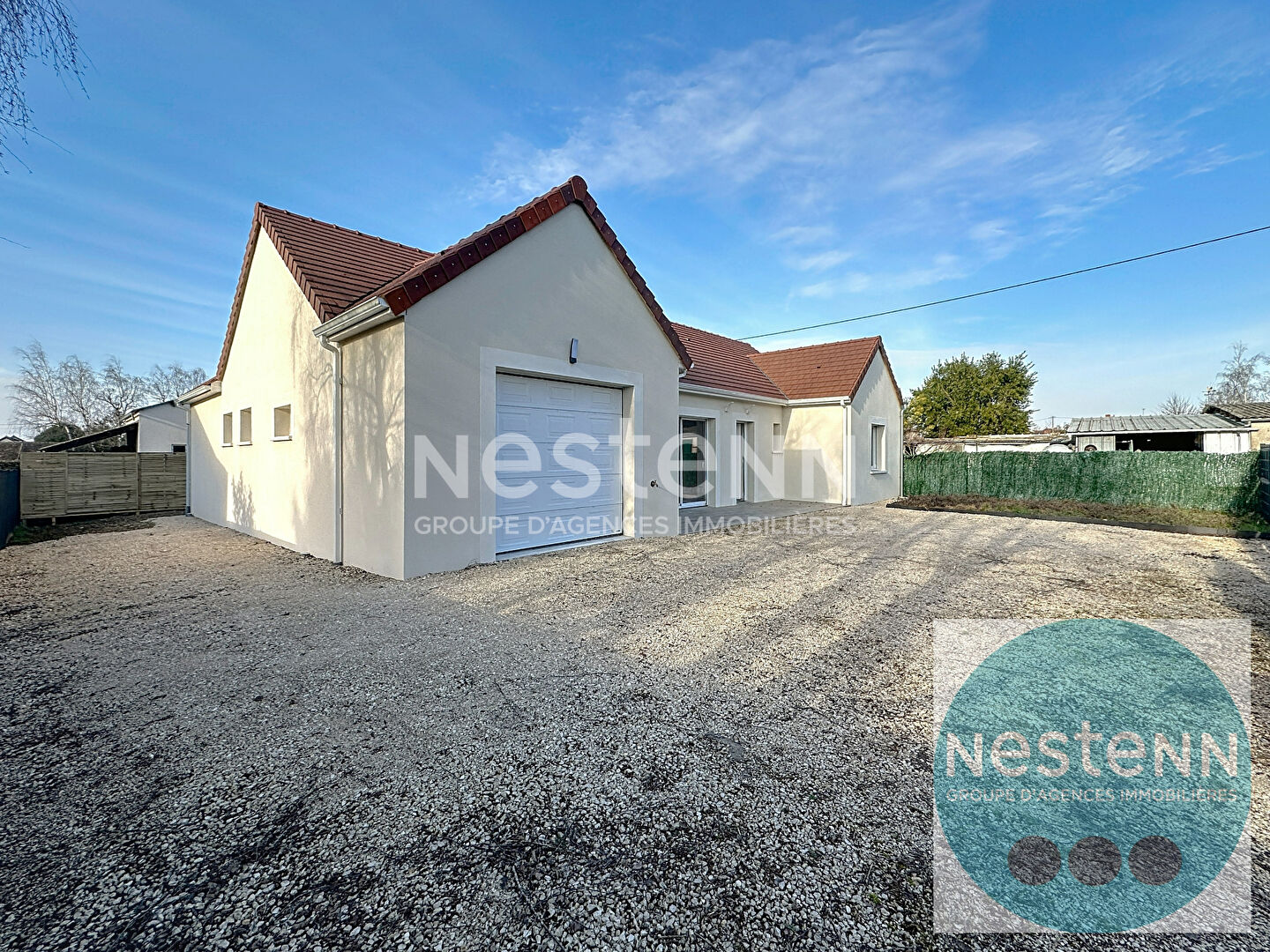 Ce pavillon moderne aux normes RE 2020, bénéficiant de garanties décennales et construit avec des matériaux de qualité, vous offre un cadre de vie lumineux et fonctionnel entièrement de plain-pied. Édifié sur un terrain clos de 471 m², il se compose d'une grande pièce de vie avec cuisine américaine aménagée et équipée, accompagnée d'une arrière-cuisine (buanderie) donnant accès à un garage carrelé, isolé et motorisé. Le logement dispose de 3 chambres, d'une salle de bain moderne avec douche à l'italienne et baignoire, et d'un WC indépendant. Prestations haut de gamme : Chauffage par pompe à chaleur avec plancher chauffant Production d'eau chaude thermodynamique Portail et porte de garage motorisés Un pavillon clé en main, combinant modernité, confort et performance énergétique, prêt à vous accueillir. Pour le visiter, appeler Eric au zero 7 67 21 98 01 ou l'agence de St Gervais La Forêt au zero 2 54 43 80 35