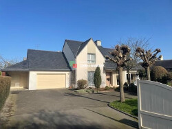 VITRE, quartier du Pavé, proche Fleuriais. au fond d'une impasse, Pavillon de 1999, extension en 2004 de 160.83 hab sur 882 m2; au RDC: entrée, 1 chambre avec une salle d'eau privative, wc, cuisine aménagée et equipée, arriere cuisine, séjour de 39 m2 et veranda; a l'étage: mezzanine, 3 chambres dont 1 avec dressing, lingerie, salle de bains et wc. garage double, carport, atelier, grenier et cave.