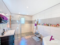 Un Espace de Vie Baigné de Lumière : Profitez d'un spacieux séjour de 50 m², idéalement exposé et baigné de lumière naturelle. Le séjour s'ouvre sur une magnifique terrasse de 50 m², véritable invitation aux moments de détente et aux repas en plein air. La cuisine, entièrement équipée, est un espace de vie convivial, parfait pour les réunions de famille ou entre amis. Confort et Prestations de Standing : 4 chambres dont une suite parentale, confortables pour toute la famille. Une salle de bains, une salle d'eau et 2 toilettes indépendantes. Chauffage au sol assuré par une pompe à chaleur moderne (récente) pour un confort optimal. Deux baies vitrées à galandage et des portes en bois de qualité.