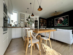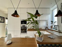 Au rez-de-chaussée, la buanderie technique accueille vos besoins pratiques, tandis que le bureau avec pierre apparente crée un espace de travail inspirant. Les toilettes japonaises ajoutent un confort discret. La pièce de vie traversante, baignée de lumière, se prolonge vers le jardin clos et la terrasse grâce à une baie vitrée de 5 m. La cuisine moderne équipée , avec osmoseur et eau pétillante, est prête à vivre.