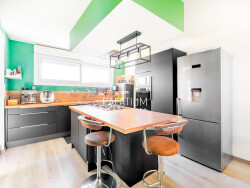 Côté énergie, la maison est équipée de panneaux photovoltaïques, garantissant une consommation électrique réduite.