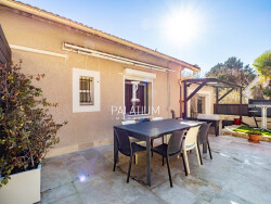 L'étage accueille la partie principale d'habitation avec un séjour, une cuisine indépendante avec accès direct à la terrasse, deux chambres, une salle d'eau avec wc, ainsi qu'un bureau actuellement aménagé en dressing.