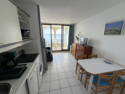 Une pièce de vie chaleureuse : Salon avec coin cuisine équipé. Une terrasse panoramique : Le clou du spectacle ! Un espace extérieur idéal pour vos repas face au Lac Marin, offrant des couchers de soleil spectaculaires sur la chaîne des Pyrénées. Côté nuit : Une chambre confortable avec un grand lit. Salle de bain : Fonctionnelle, avec baignoire et WC. Commodités : Parking résidentiel au pied de l'immeuble.