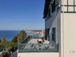Exceptionnelle vue mer, des côtes landaises aux montagnes Pyrénéennes, pour ce bien rare niché au bout d'une impasse dans une superbe villa néo-basque.