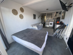 Situé centre port agréable studio cabine avec sa belle terrasse. Vous êtes à deux de la plage et du port. Belle situation pour vos vacances !!!! Bien soumis au statut juridique de la Copropriété. Charges annuelles de copropriété (Montant moyen annuel quote-part du budget prévisionnel vendeur) : 720 ?. Pas de procédure en cours. Honoraires TTC charge vendeur CARLOS 06 60 80 82 63 carlosagence@capzephyr.com www.capzephyr.com