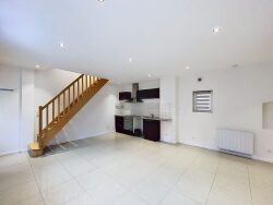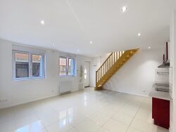 Maison en duplex 3 pièces de 54m² située au fond d'une cour commune, comprenant : une entrée donnant accès au séjour, une cuisine aménagée et équipée (four, plaque, hotte) ouverte sur le séjour, une salle d'eau avec WC.