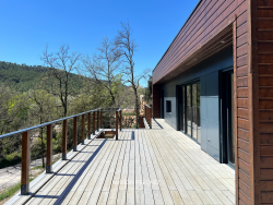 Rare à la vente! Située au coeur de la Provence Verte et au sein du village provençal de Salernes, cette villa atypique neuve de 106m2 à ossature bois séduit par son architecture moderne, ses volumes généreux et sa vue sur la forêt environnante. Édifié sur un terrain de 1376m2 en position dominante, le bien dispose d'une belle pièce de vie lumineuse de 46m2 ouverte sur une vaste terrasse suspendue. L'installation du réseau d'eau et d'électricité est en place et est prête à accueillir la cuisine de votre choix. Une niche intégrée au décor du salon confère un atout esthétique à votre coin TV. L'espace nuit offre trois chambres dont deux avec un accès direct à l'extérieur. La suite parentale, à l'écart des deux autres chambres, a été pensée pour une vie de famille plus confortable ou pour recevoir en toute sérénité. Une deuxième salle de bain dispose d'une douche italienne et d'une baignoire qui offre une vue sur la forêt grâce à une fenêtre panoramique. Une buanderie et un WC indépendant avec lave-main complètent la description. Une passerelle et des escaliers en bois permettent de circuler aisément autour de la villa et mènent vers une piscine exposée sud prolongée par une terrasse ombragée et à ciel ouvert. À l'extérieur, un cabanon permet de disposer d'un espace de stockage abrité. Le bois, matériau noble et chaleureux, offre une ambiance douce et contemporaine, tout en assurant une excellente performance énergétique. Pompe à chaleur gainable réversible, fenêtres double vitrage à isolation renforcée et volets roulants électriques. Un espace a été prévu pour le stationnement des véhicules au sein de la propriété. Ce cocon est un véritable coup de coeur, à la fois intime et ouvert sur un cadre naturel. Le village de Salernes est réputé pour ses fabriques de céramiques, non loin du Parc Régional du Verdon, sur la route des vins de Provence, des lavandes et des oliviers. Cette annonce vous est proposée par GENRE Jessica - - NoRSAC: , Enregistré à de