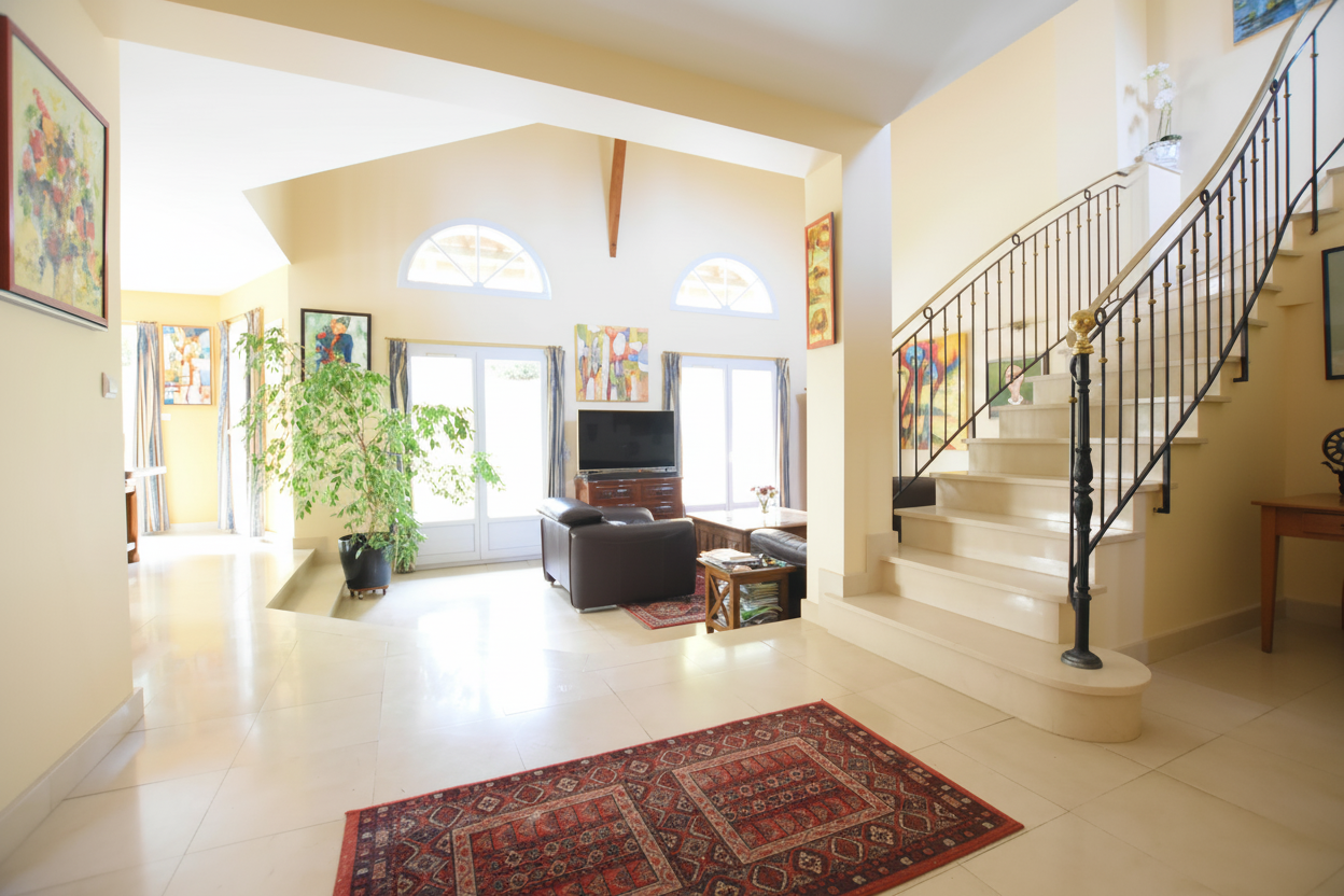 ...Il s'ouvre largement sur une véranda de 50 m2, véritable extension lumineuse de la maison...