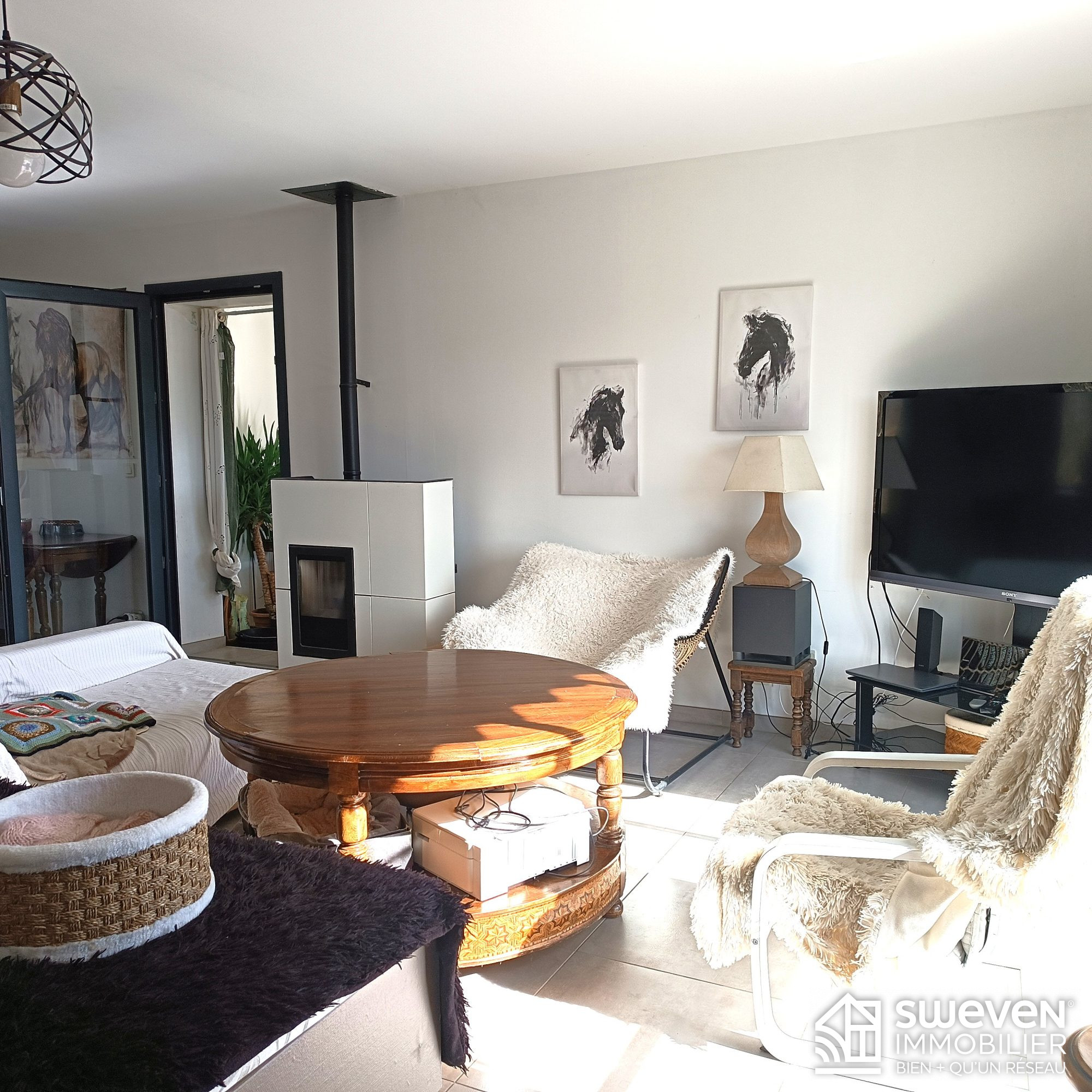 ...Découvrez le séjour de 48 m², baigné de lumière grâce à ses grandes ouvertures en aluminium à...