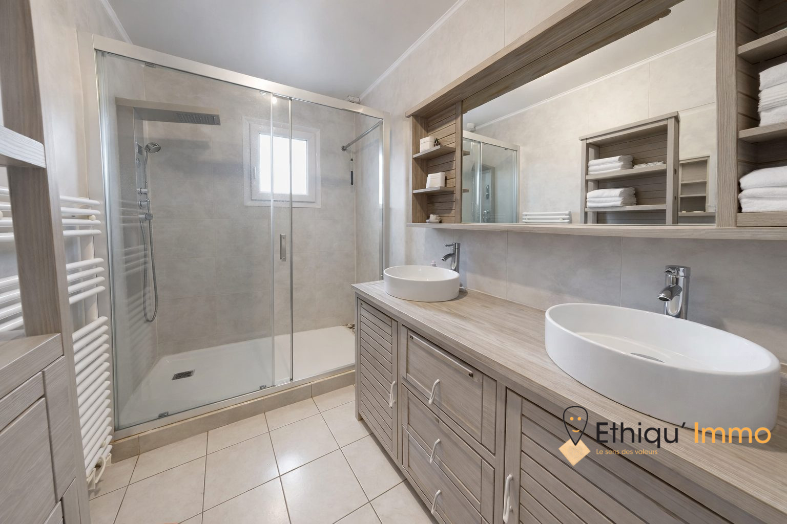 ...Dès l'entrée, vous découvrez une superbe pièce de vie de près de 46 m², baignée de lumière, avec...