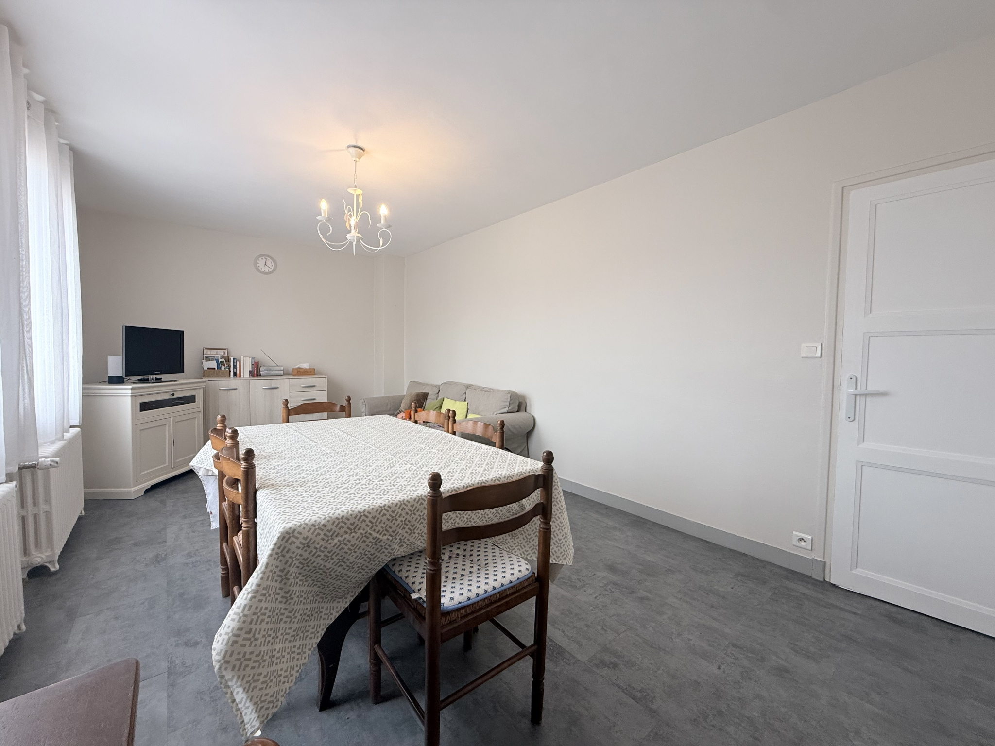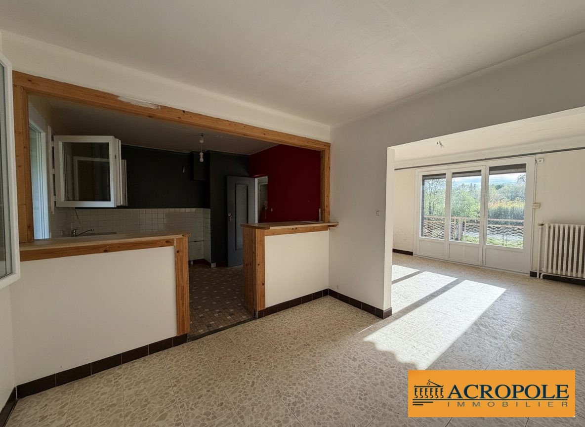 ...Elle s'ouvre sur un couloir desservant un séjour, une cuisine semi-aménagée, deux chambres, une...