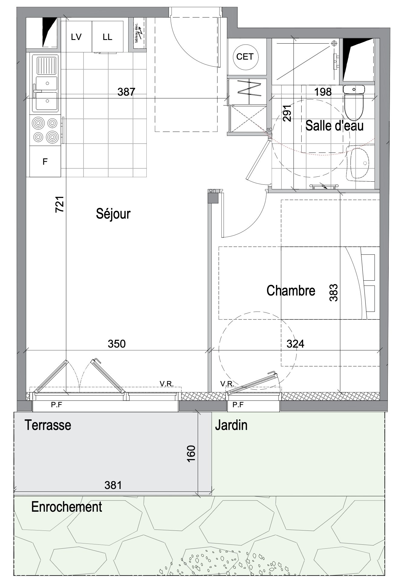 ...), salon / séjour / cuisine aménagée et équipée (induction + hotte+ four) (37 m² env...