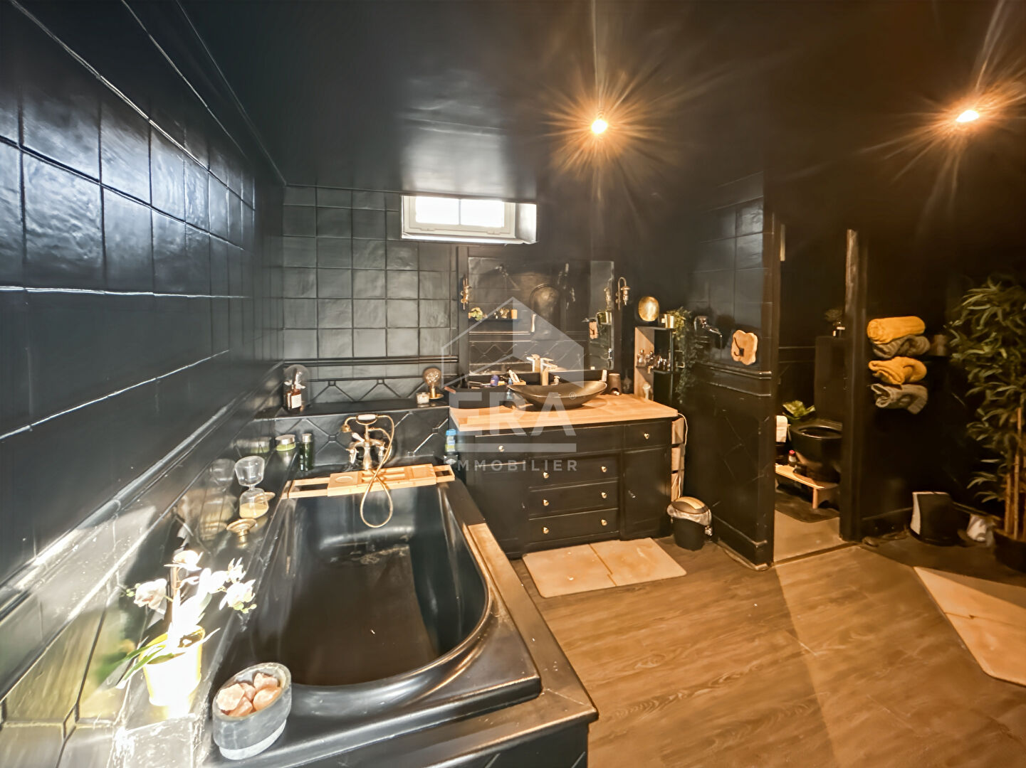 ...Elle comprend au RDC : un grand salon/séjour de 40m², une cuisine équipée et aménagée avec un...