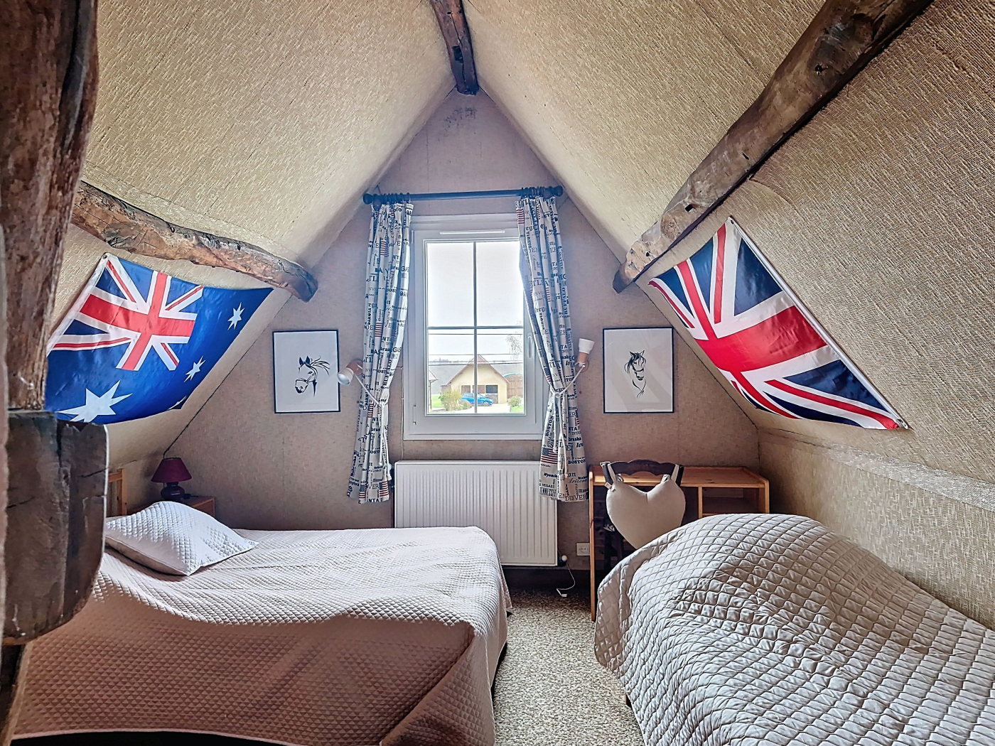 ...À l'étage : palier, 2 chambres en enfilade (possibilité de créer un couloir pour les...