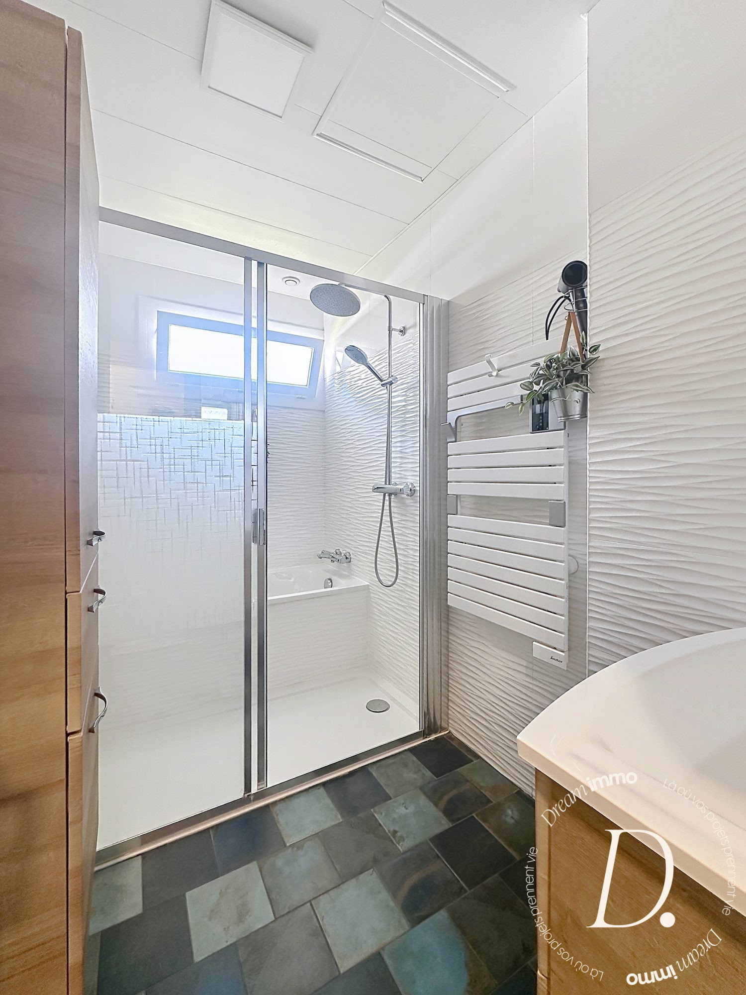 ...Au rez-de-chaussée, elle se compose d'une entrée avec placard, un beau séjour-salon avec cuisine...