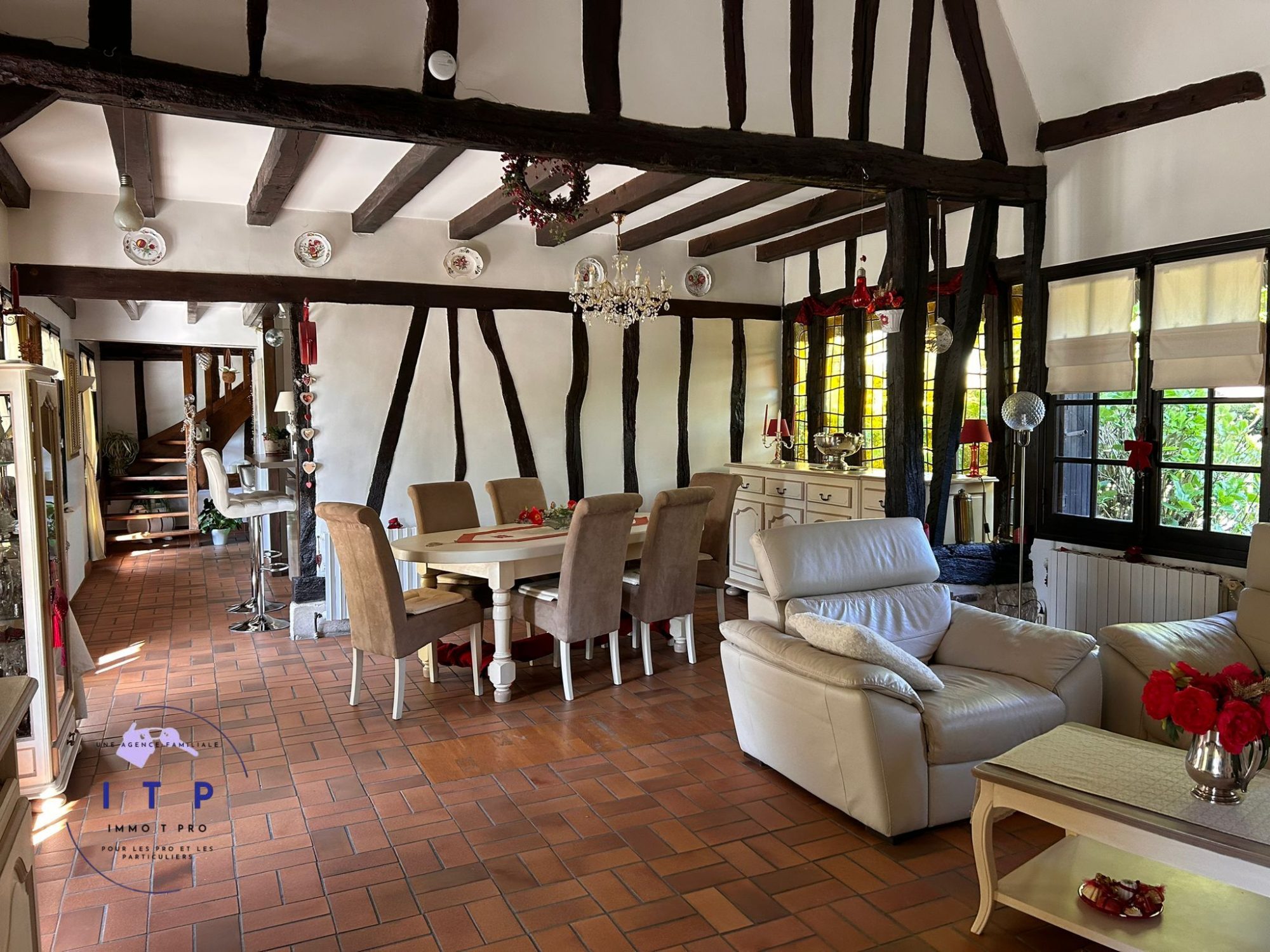 ...Cette chaumière de 163m², située à Saint-Ouen-du-Tilleul, incarne l'élégance des demeures...