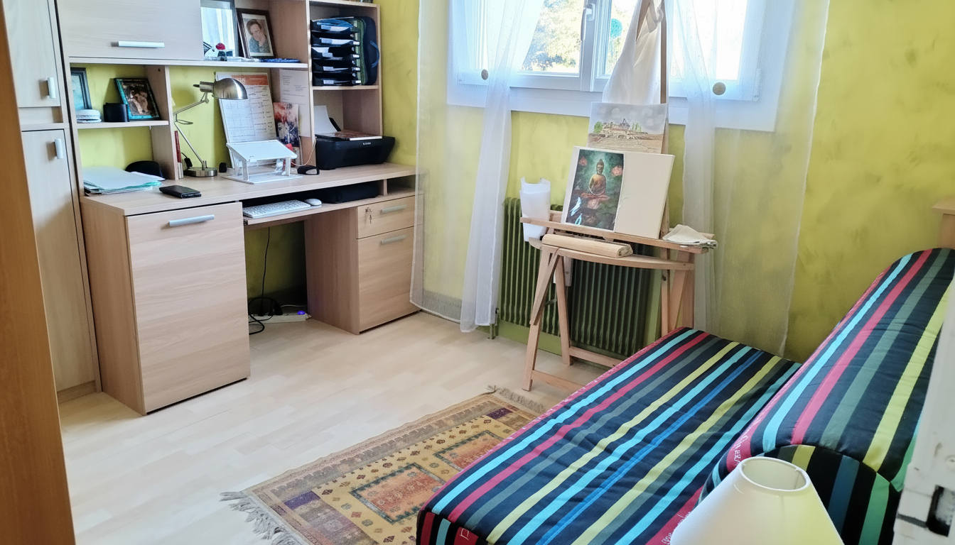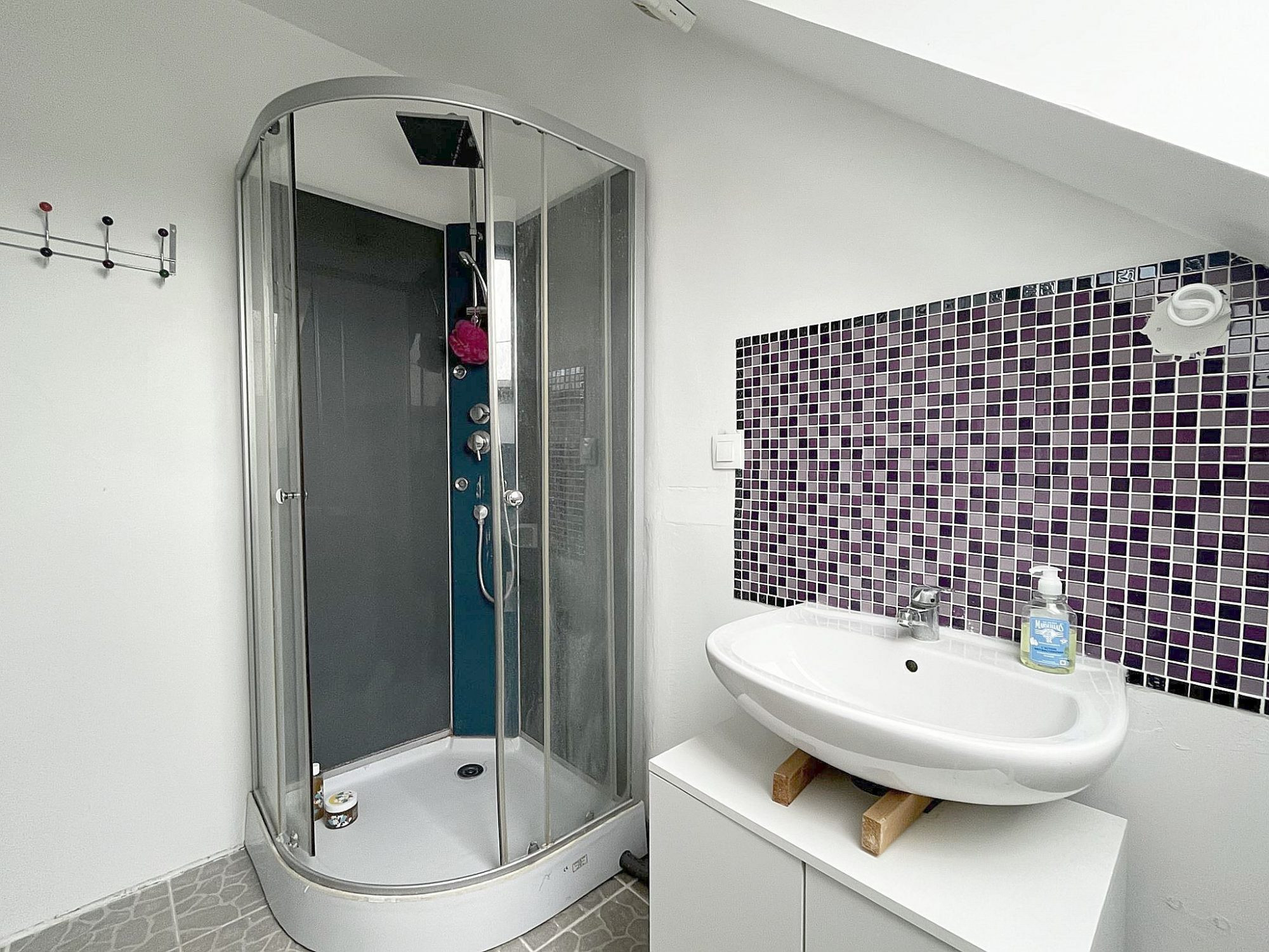 ...Elle se compose d'une entrée avec placard, d'une pièce de vie de 35m² avec poêle à granules,...