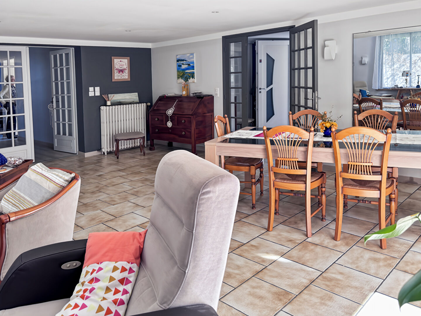 ...Elle se compose d'un double salon séjour, une cuisine ouverte, un wc indépendant, une première...