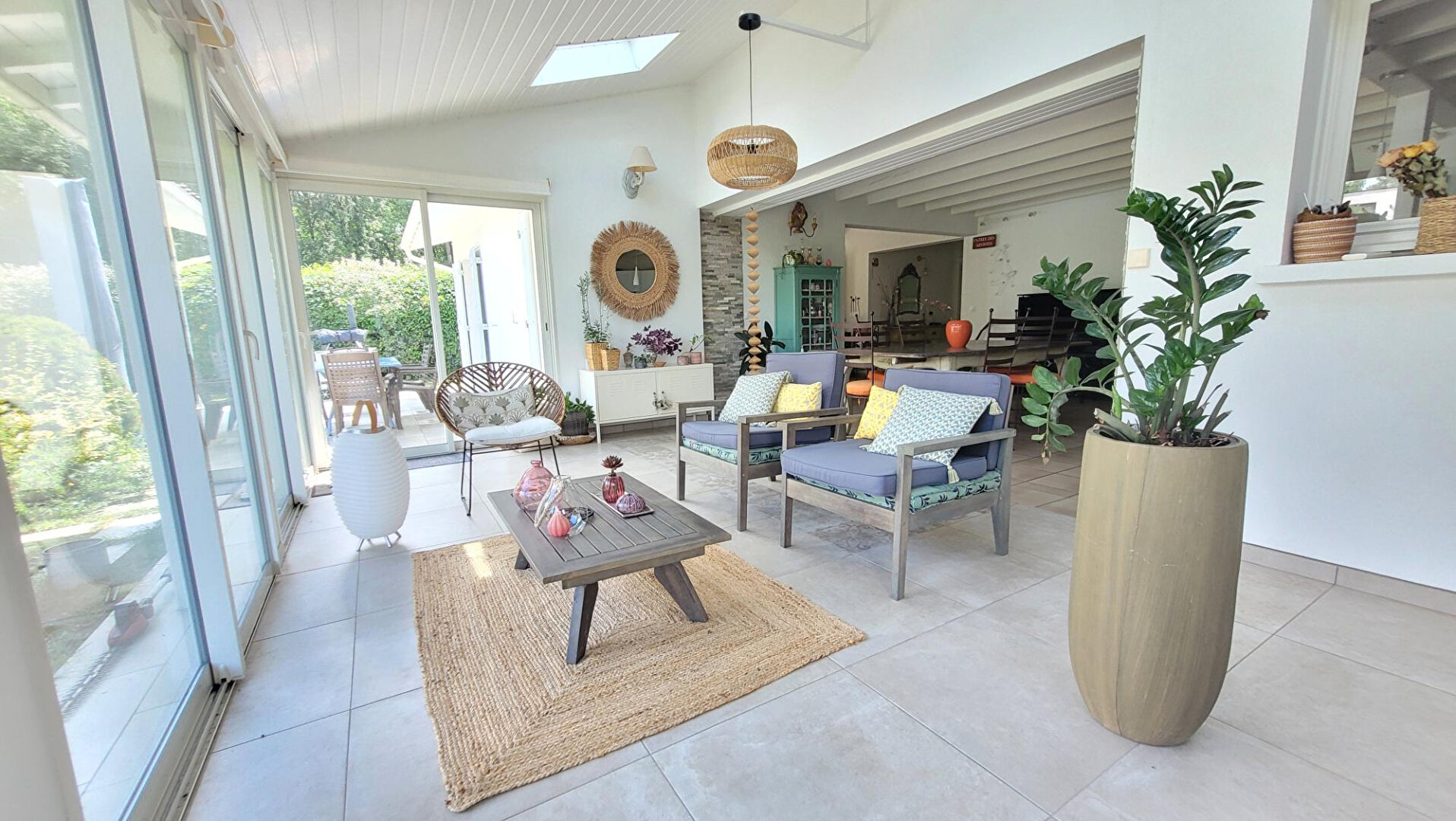 ...Dès l'entrée, les volumes impressionnent : une somptueuse pièce de vie d'environ 69 m², sublimée...