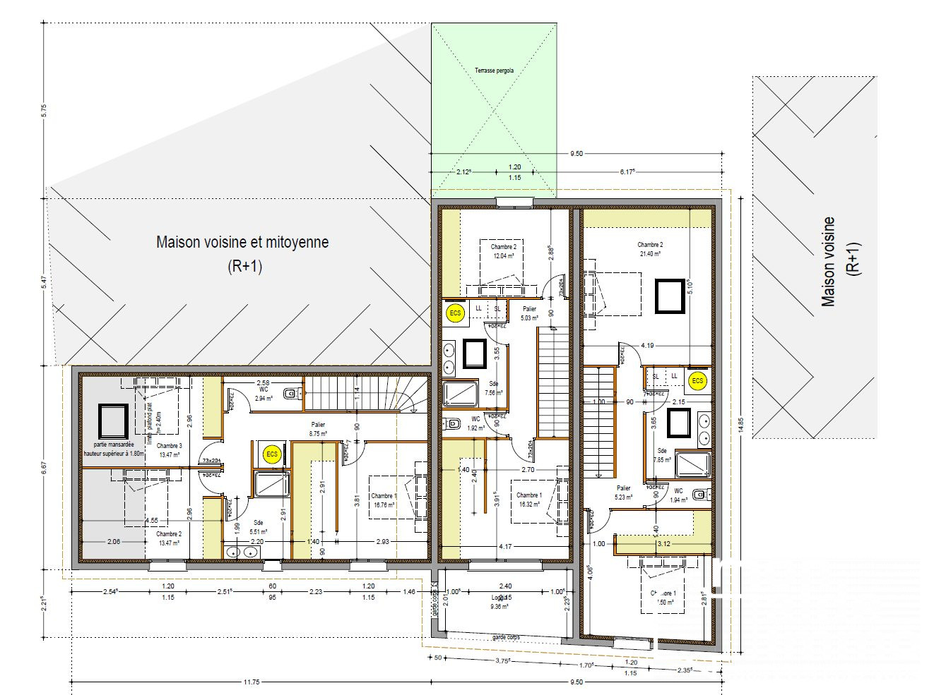 ...PROJET DE RENOVATION INVESTISSEUR3 appartements :- Un T3 duplex de 78m2 avec terrasse couverte et...
