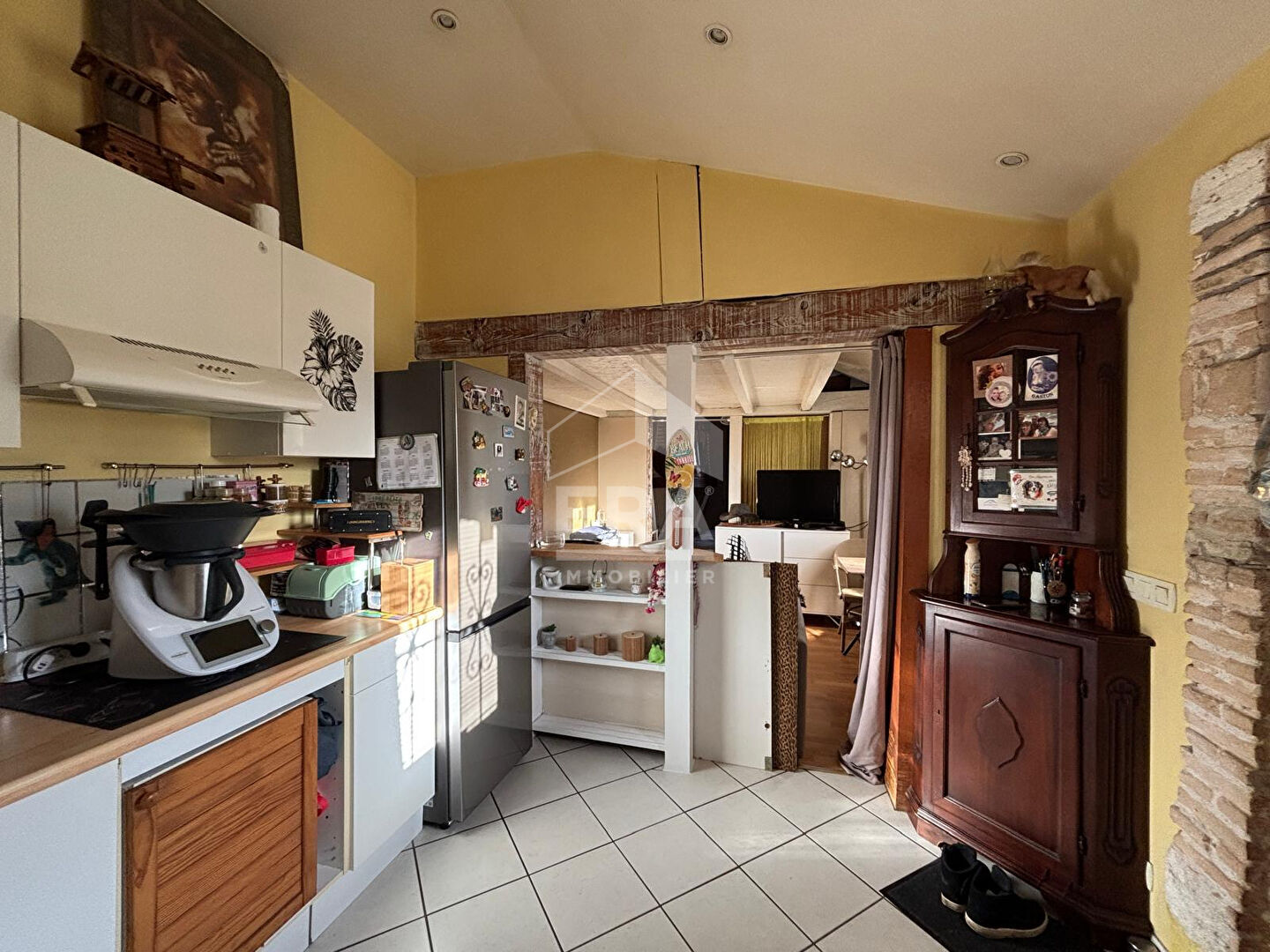...La maison présente un salon-séjour lumineux avec cheminée, une cuisine contemporaine ouverte sur...