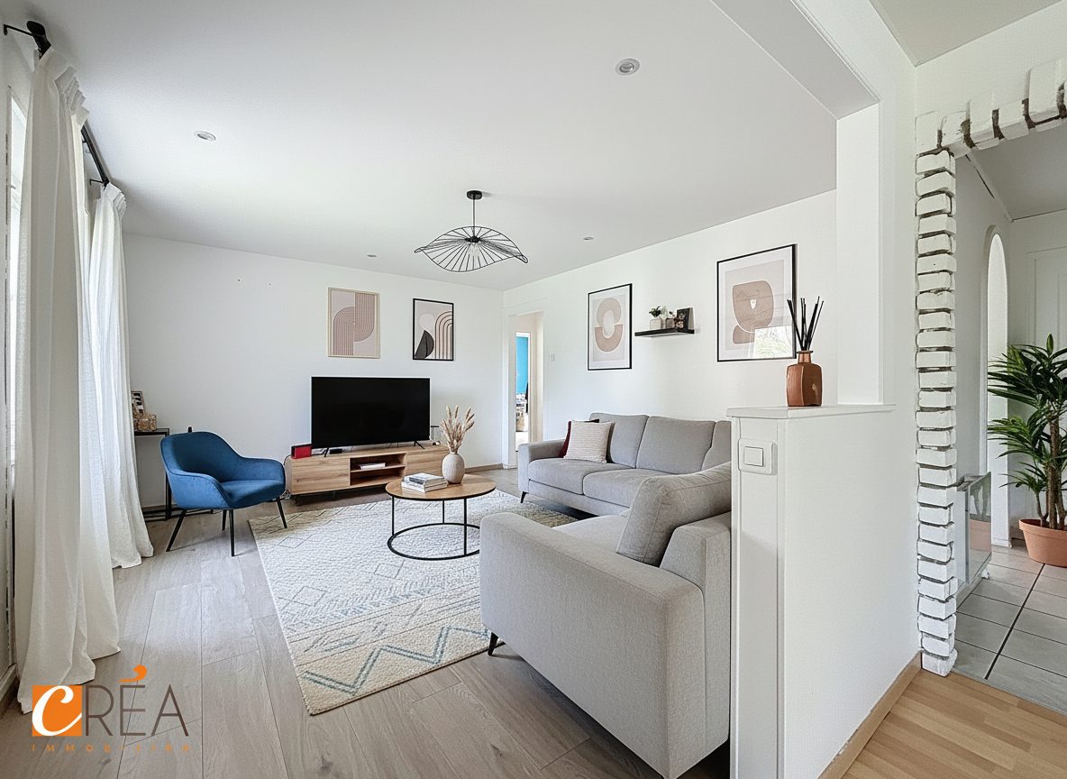 ...L'entrée nous invite vers une pièce de vie confortable et lumineuse avec cuisine équipée ouverte...